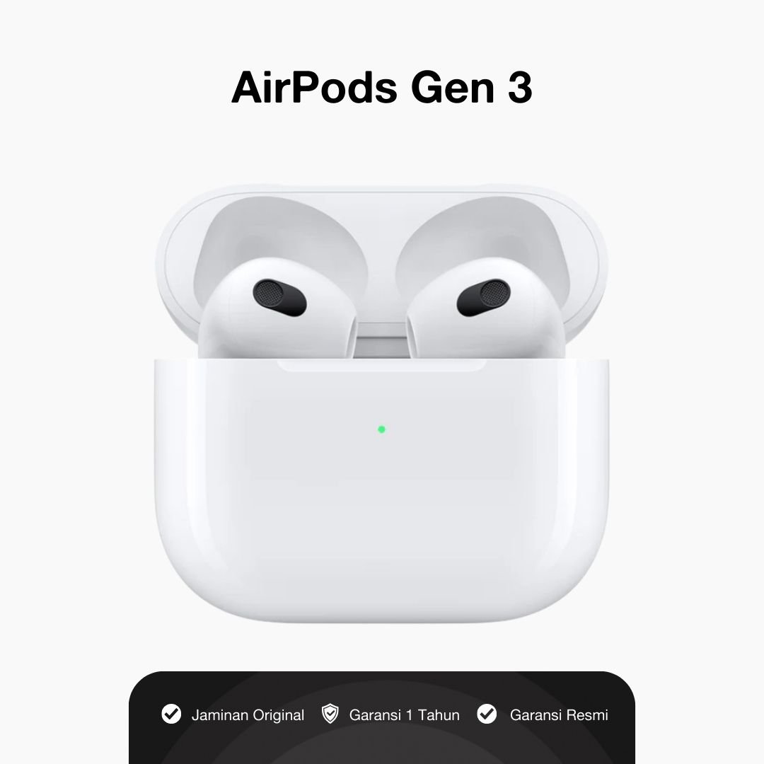 AirPods Gen 3 memiliki fitur unggulan seperti Audio Spasial, Adaptive EQ, ketahanan air dan keringat (IPX4), serta chip H1 untuk konektivitas Bluetooth 5.0. Casingnya mendukung pengisian daya nirkabel MagSafe dan Qi, serta pengisian daya kabel melalui konektor Lightning. Daya tahan baterainya hingga 6 jam untuk mendengarkan musik dan 30 jam dengan casing.